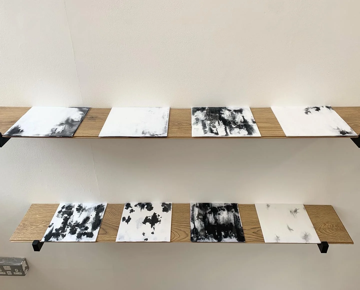 This work expands on my areas of interest, in direct response to personal grief. Going through the loss of my parents and the impact of bereavement and mourning within my life has led me towards more abstracted forms of representation. Considering mark making to create a form of visual language for my interpretation of grief and the psychology around its classifications, with a specific reference to the psychological theory of there being 5 'Stages of Grief', and '16 Types of Grief’. Generating a sense of order and index allows for a digestible visual for a taboo subject, where I hope to be able to open a wider area of discussion around loss and grieving. This work is also self-serving as a form of catharsis, and hopefully understanding for myself to come to terms with my grief and generate a lasting legacy for my Mum in honouring her through this work.